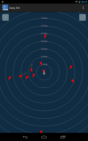 Com o aplicativo " easyAIS " do WeatherDock AG, todos os alvos do AIS dentro do intervalo são exibidos em relação à posição do usuário.